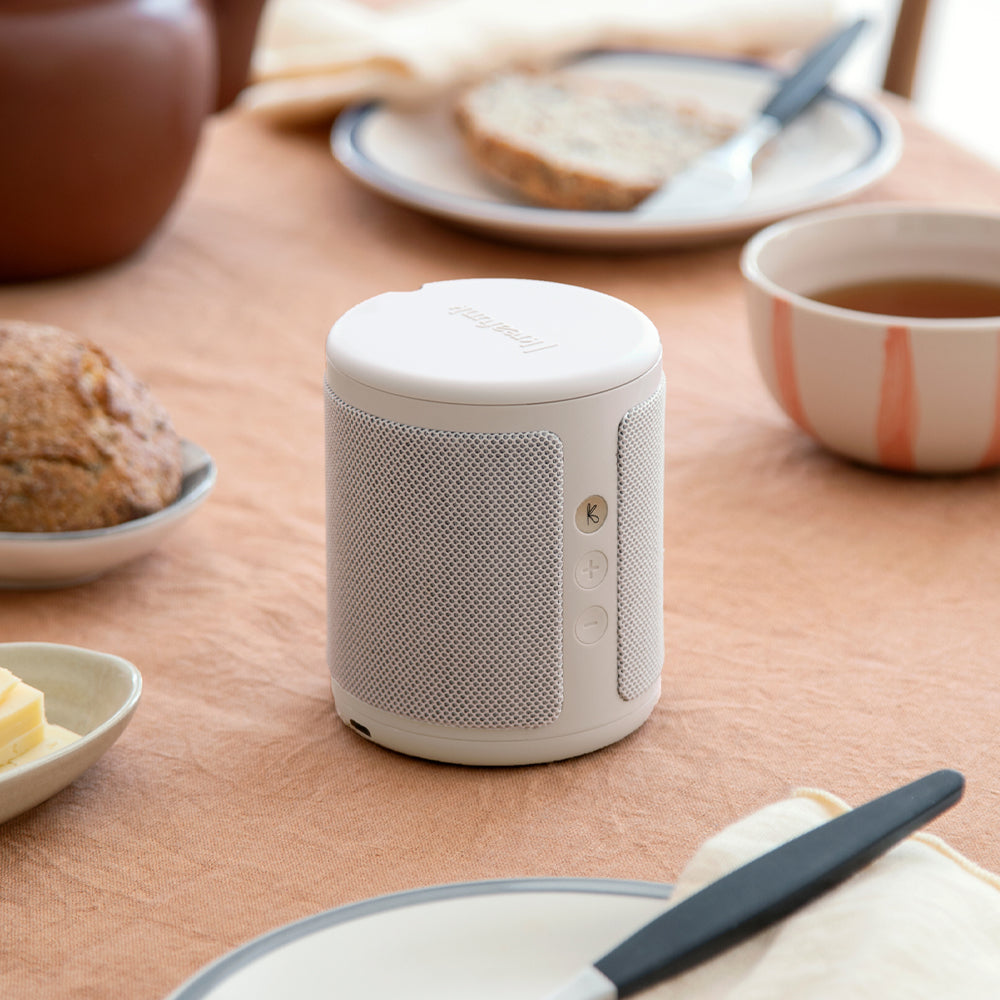 Kreafunk Dabbie Dab+/Fm Radio W/ Bluetooth - Soft White - Dabbie by Kreafunk Where Elegant Design Meets Everyday Functionality. Introducing Dabbie the sophisticated DAB+ radio and Bluetooth speaker hybrid from Kreafunk that effortlessly blends style and versatility. Whether you're tuning into crystal-clear DAB+ or FM radio or streaming your favorite playlists via Bluetooth, Dabbie delivers outstanding sound quality that elevates any moment. Designed for modern living, Dabbie includes smart features like wireless charging and an integrated alarm clock, making it a functional companion from morning routines to weekend getaways. The minimalist display can be discreetly hidden for a sleek, clutter-free look.Perfectly portable and IPX4 water-resistant, it's ideal for both indoor ambiance and outdoor adventures.